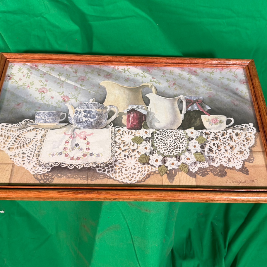 A small picture of a tea setting 18" x 11" and even if you don't like the pic, perhaps you'd like the frame.